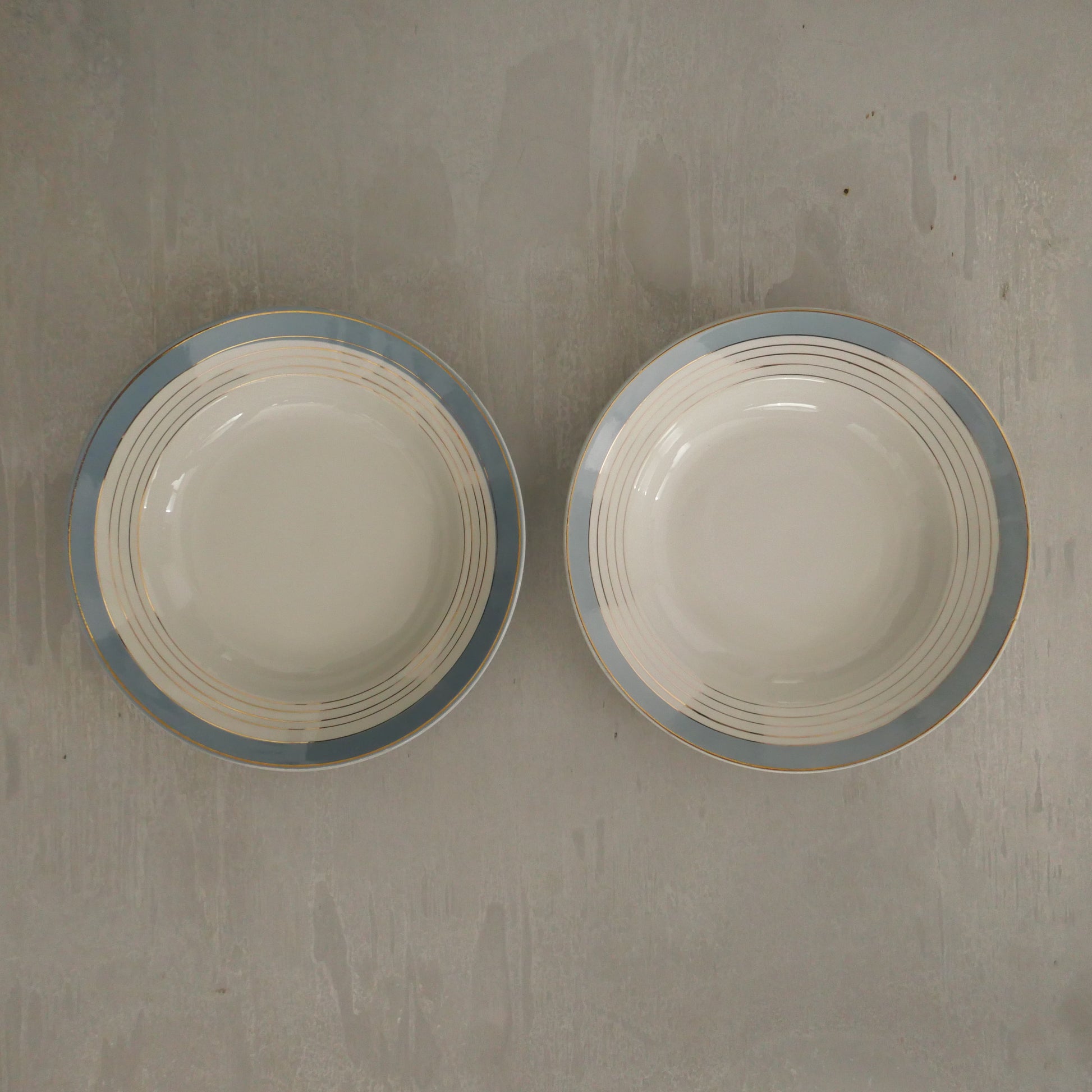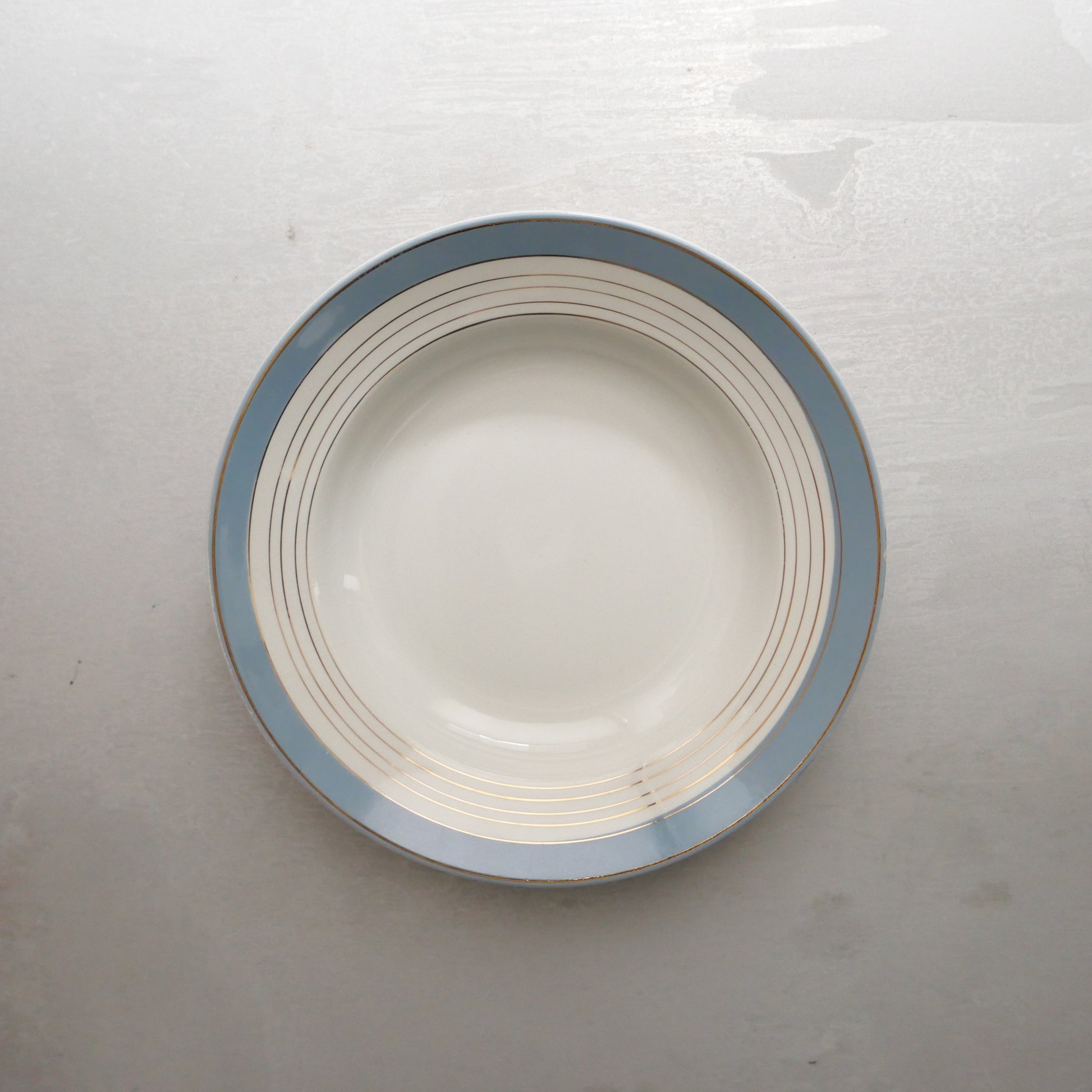 淡いブルーとゴールドトリムのデザインが目を引く貴重なアイテム。